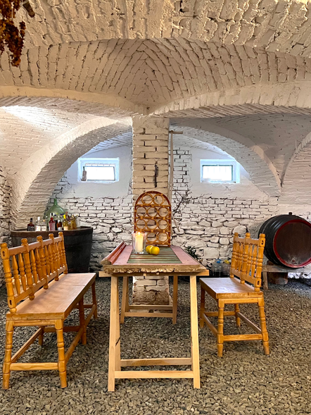 Welcome to our wine cellar, where rustic charm meets wine enthusiast vibes. Explore our showcase wall displaying a tempting array of local varieties. It is the perfect place to escape from the summer heat and cool down with a glass of locally made rose, white, or red natural wine